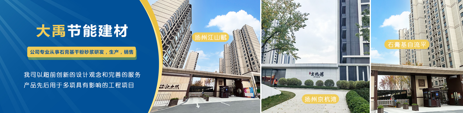 揚州市大禹節(jié)能建材科技有限公司成立于2005年9月,位于聯(lián)合國宜居城市---江蘇省揚州市,地處江都經濟開發(fā)區(qū),與揚、鎮(zhèn)、泰三市接壤,交通十分便捷。公司是專業(yè)從事石膏基干粉砂漿研發(fā),生產,銷售一體化的綜合性科技型企業(yè),為國家標準GB/T2862-2012《抹灰石膏》的參編單位?! 」緭碛袊鴥纫涣鞯奶胤N砂漿生產線,并配有各種先進的檢測儀器,年生產能力可達10萬噸。各崗位管理及技術人員齊備,對產品···